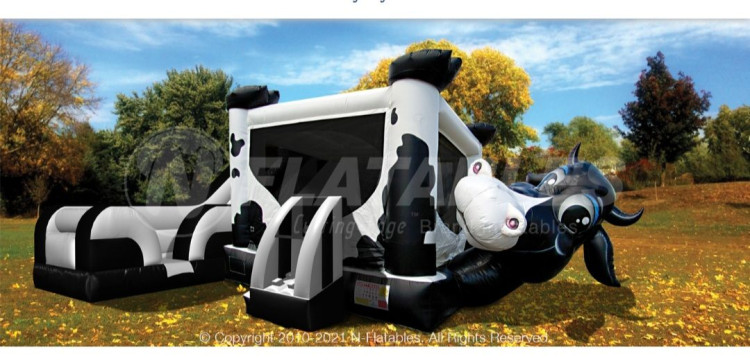 Set up on a flat surface and anchored securely, this unit offers straightforward rental logistics—one standard blower keeps it inflated, and it’s sized to fit most lawns, community centers, and gym floors. The cow-themed graphics and cheerful color scheme make it especially well-suited to farm, western, or animal party themes, but its core appeal is universal: safe, active entertainment that encourages jumping, sliding, and social play. For rental hosts, it’s a reliable choice to keep groups of younger kids engaged for an hour or more while providing easy supervision and cleanup.